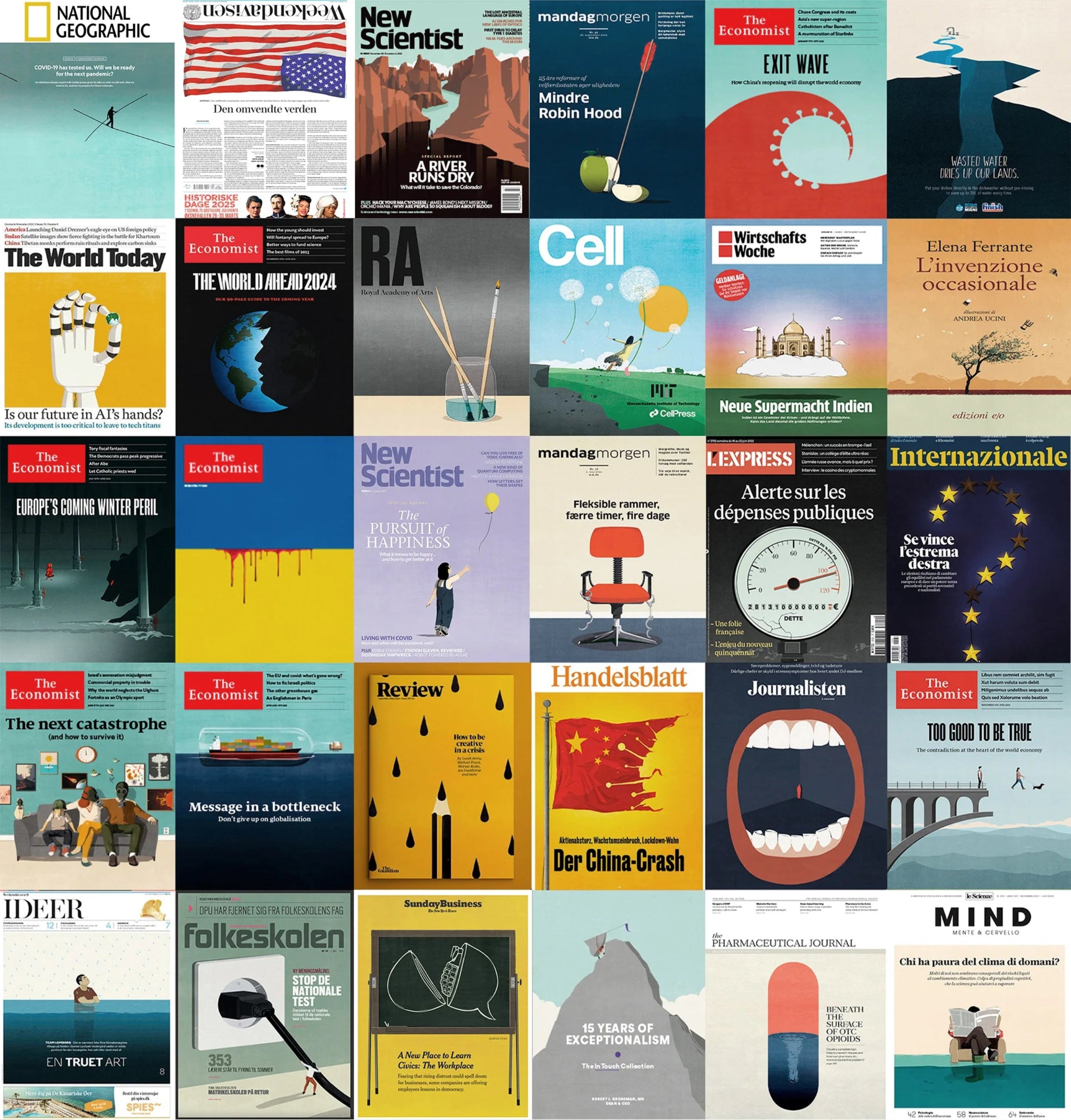 The New York Time, The Guardian, The Economist, Harvard Review, The Washington Post, Handelsblatt Magazine, National Geographic, Royal Academy of Art, Oprah Magazine, The Wall Street Journal, The Sunday Time, The Time, The Rolling Stone, Bentley Magazine, Entrepreneur Magazine, Foreign Policy, Advertising Age, Barron´s Magazine, Boston University, Handelsblatt Magazine, Alberta University, Chronicle of Higher Education, Sygeplejersken Magazine, The National Magazine, The Museum of Selfies, Calgary Theater, Mosaic Science, Desert Companion, LaVie, LeMonde, UCLA Magazine, Nexus Magazine, Zetland, Einaudi, Die Zeit, New Scientist, Bompiani, Crain Magazine, Dartmouth Alumni Magazine, Carey Business Magazine, Stanford University,5ASH, Onward Magazine, 5280 Magazine, Action Patrimonie, British Heart Foundation, Calibre Magazine, Capital Magazine, Cassette Type, Contently Job, Corriere della Sera, Dot Editorial, Europa Editorial, Endpoint Helisyum, Folkeskolen Magazine, Foreign Policy, Il Foglio, L´Express France, LDS Living, Magnolia Journal, Mind Magazine, Mother Jones, Newcastle University, The Milaneser,Ohio Magazine, On Being, Outside Magazine, Penta Magazine, Philosophie Magazine, Politiken, Sette7, Springer Nature, Berkeley Law Magazine, The Foundry, Minnesota Alumni MagazineThe Journal, The Pharmaceutical Journal, Quarto Group, Courier International, Tuft Dental, Fazi Editrice, University of New Hampshire, Virginia Tech, Weekend Avisen, Iscene Magazine, Wortees,The Virginia Tech, Weekend Avisen, Iscene Magazine, Wortees, The Wharton Magazine, The Markup, Texas Observer, Tempus Corporate, Rotary Magazine, Nuvo Magazine, ItalGas, Interni Magazine, Finans Magazine, Brandeis Magazine, Boston Globe, Arte Magazine, University of Miami Medicine, Certo Magazine, Chicago Booth Review, Cristianity Today, Garante Infanzia, Dow Jones, American Academy of Family Physicians, Havas Milano, HEC Stories, Johns Hopkins University, Massachusetts Institute of Technology, Montecristo Magazine, Ovation Press, Proto Magazine, Shopify, The Fundrise, Veterinary Business Magazine, Zahori Books, Journalisten, MandagMorgen, In Trust Magazine, New Republic, Axcel, Resources Magazine, The Foundrise, TUFTS Magazine, The Post Internazionale, WebMD, FD Weekend Magazine, AWE Studio, Business Insider, EM Project, Maj Invest, Angels on Heart Magazine, AWE Studio, Business Insider, EM Project, Brunello Cucinelli, Kentucky Living, 3F Fagbladet, The Parliament, The New Republic, City and State Magazine and many more.